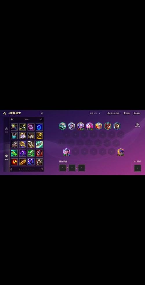 〖Six〗、薇恩装备:羊刀、飓风(可黑)这两件是必须的,第三件还可以给羊刀和飓风,或者帽子、法爆(可黑)。千珏装备:旗子旗子旗子。放薇恩旁边给薇恩加buff,大招还能保护薇恩。坦克装备可以给佛耶戈,多余的ap装备可以给卡特。上9人口可以上宝石(2骑士),或者贾克斯(2铁甲卫士)。
