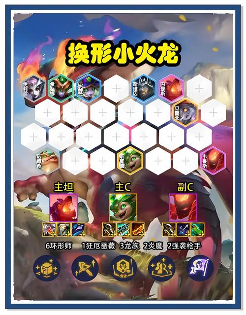 〖Two〗、金铲铲之战s5换形豹女阵容推荐及T0黑科技玩法如下:阵容组成: 主要成员:豹女、纳尔、杰斯、龙女、石傲玉、巴德、奶妈。羁绊构成: 4换型:提升换形师的变身能力,增加额外生命值和攻击力。 5玉龙:获得玉龙的回复效果和攻击加成。 2冒险:提供额外的攻击速度和暴击几率。