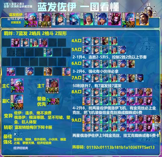 阵容搭配 核心奕子:金克丝、潘森、锤石、厄斐琉斯、蔚、妮蔻、阿木木。这套阵容以朋克金克丝为核心,结合了高质量的棋子,能够发挥出强大的输出和控制能力。羁绊选取 主要羁绊:4朋克、4护卫、2疾射枪手。