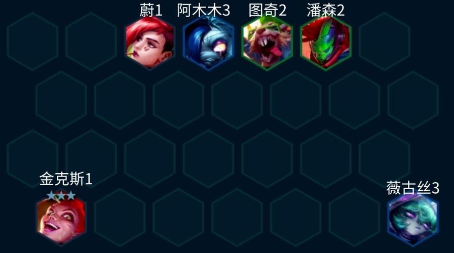 阵容构成 所需弈子:金克丝、潘森、锤石、厄斐琉斯、蔚、妮蔻、阿木木。组成羁绊:4朋克、4护卫、2疾射枪手。该阵容以朋克和护卫羁绊为核心,提供强大的输出和防御能力,同时疾射枪手羁绊增强金克丝的输出。