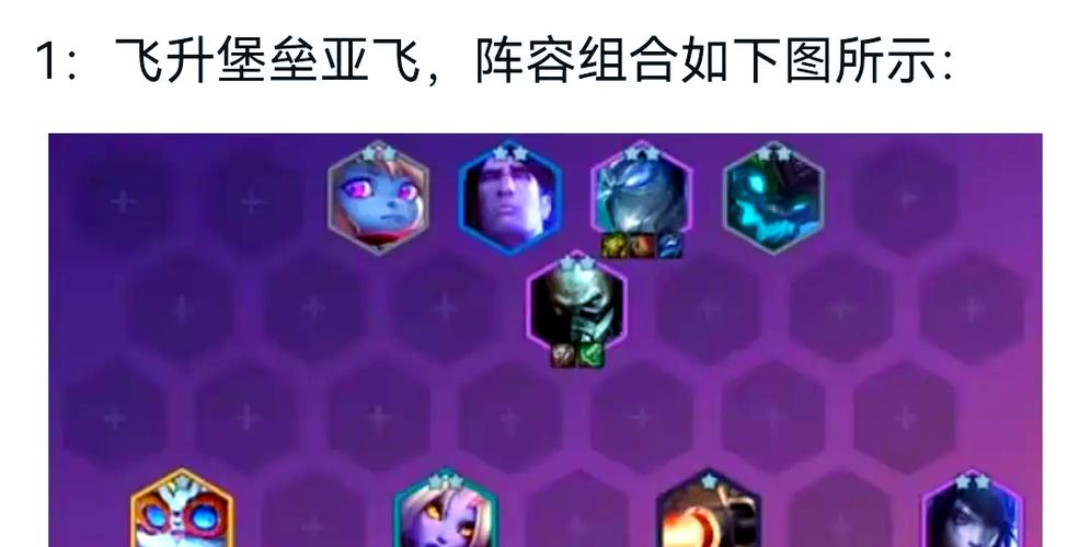 〖One〗、阵容选取与搭配 六幽影赛芬阵容:强调前排肉盾与后排输出,赛芬作为主要输出点,需优先配备日炎、饮血和泰坦等装备。中期可灵活调整,如补亚索或巴德提升阵容强度。金鳞飞机阵容:以飞机为核心输出,搭配驯龙、战士和警卫等角色。露露和青蛙公主为飞机提供防御和加速效果,飞机需注重物理伤害装备。