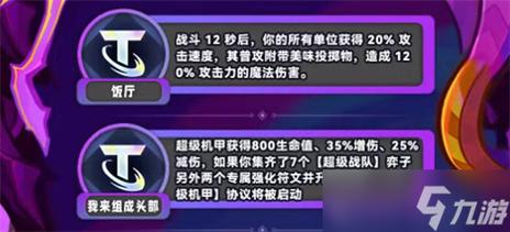 〖One〗、看到必选(T1)窃贼帮派:能够提供额外的装备和金币,极大增强前期战斗力。新人入队:为队伍提供额外的英雄,增加阵容灵活性和战斗力。升级咯:快速升级人口,提高阵容上限。前进之路:提供额外的经验值,加速升级过程。羽量级III:为低费卡提供额外攻速,适合赌狗阵容。