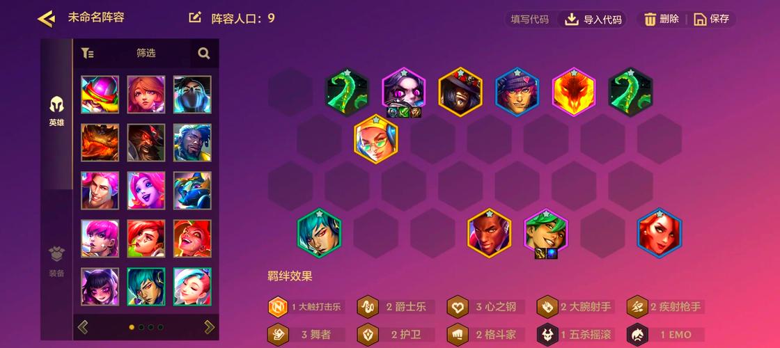 阵容组成与羁绊强度 阵容组成:该阵容由佛耶戈、死歌、天使、铁男、纳尔、阿卡丽、妮蔻、莉莉娅等英雄组成,这些英雄各自拥有独特的技能和属性,能够形成强大的战斗力。羁绊组成:5五杀摇滚、3超级粉丝、3KDA、刀锋领主和2裁决等羁绊的组合,使得该阵容在攻击、防御和控制等方面都有出色的表现。