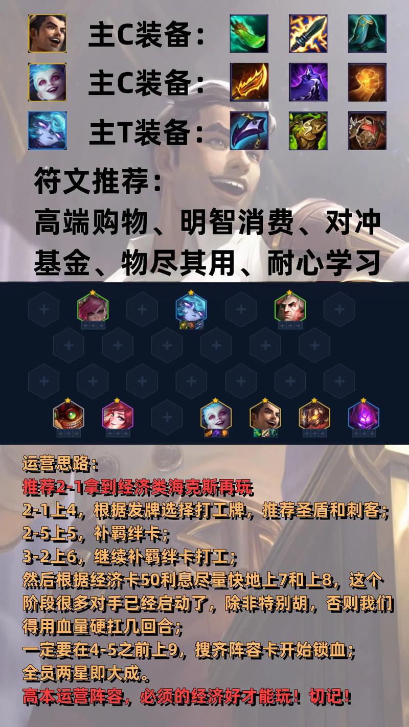〖Five〗、符文与英雄之力 符文:根据战况选取,如裁决战士之心、德玛西亚之心等增强羁绊的符文。 英雄之力:首选剑圣,打气和开飚对阵容有显著加成。运用策略 前期过渡:使用3德玛西亚+任意两个高星级棋子打工,优先合成德玛西亚装备给波比,或选取其他强力阵容过渡。选秀优先拿金铲铲、眼泪、暴击拳套。