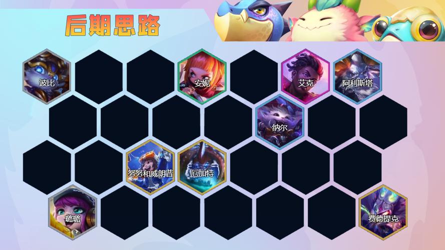 〖One〗、开局选秀:优先拿取坦度装备或输出装备散件。过渡阵容:2护卫+2射+2冒险为当前最强过渡体系。升人口节奏:2-1升2-5升3-2升6,4阶段看连胜情况升7人口大搜卡,之后卡着30金币追呲呲与纳尔三星。8人口成型:在纳尔与呲呲来后升8人口,添加巴德阵容成型。综上所述,金铲铲之战冒险纳尔阵容以其低难度、高输出和灵活变阵的特点,成为不少玩家的首选。