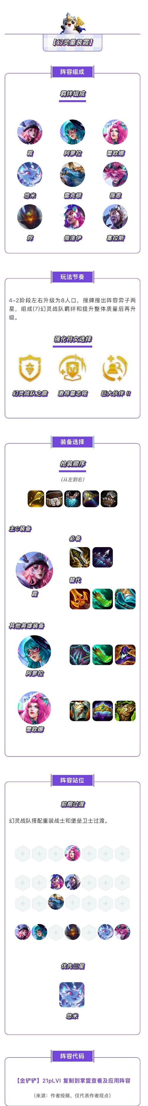 必拿:保镖转职、保镖之心、保镖之冕、急救用具、电火花。次选:古代档案、站在身后、黄金门票、升级咯、意外之财。装备分配:加里奥:辅助型装备如冰霜之心、莫雷洛的秘典、石像鬼石板甲、救赎、静止法衣、凌风等。阵容运营:速8阵容:对转职要求极高,需至少拥有2个保镖转职。