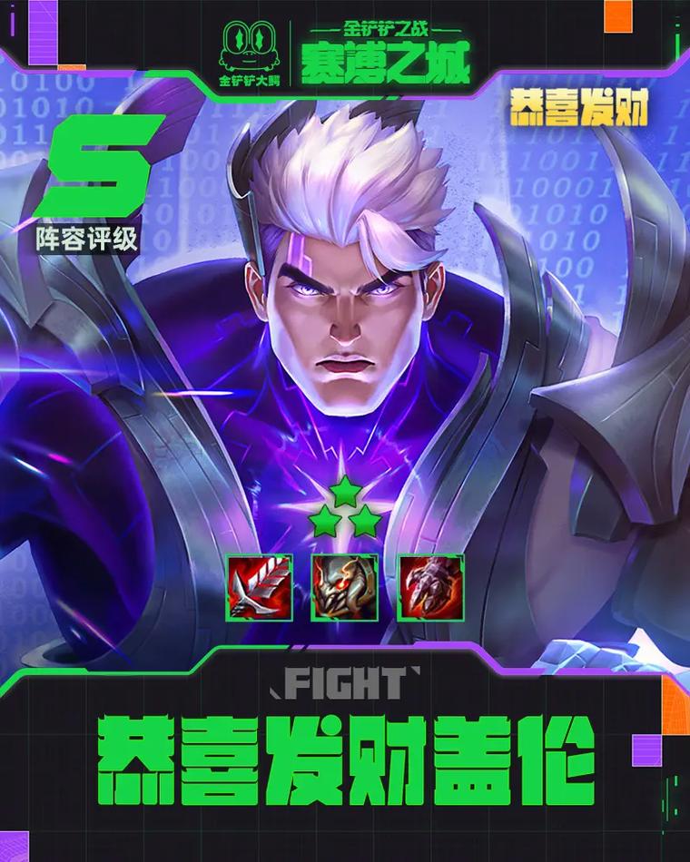〖Six〗、《金铲铲之战》S5机甲精英盖伦玩法攻略如下:符文分析 经济类符文:推荐选取“升级喽”、“高端购物”、“生日礼物”等,这些符文可以快速提升人口,增加找到关键四费卡和五费卡的概率。利滚利:增加经济收入,有助于快速成型。纷乱头脑:提供额外的经验和金币,加速阵容成型。