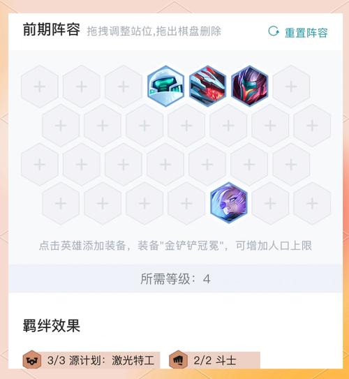 阵容核心 阵容构成:以3机甲(盖伦、猴子、武器/蕾欧娜)、3至高天(烬、薇古丝、派克)、3混沌(烬、牛头、蕾欧娜/佛耶戈)为核心,辅以其他羁绊如护卫、黑客等。核心思路:前期稳定血量,中期转型,后期依赖4-5费卡提升战力。