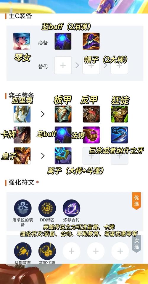 〖Three〗、装备推荐 虚空之女:无尽之刃、饮血剑、青龙刀。这些装备能提供高额的攻击力和吸血能力,以及技能施放速度,使虚空之女在战场上更具威胁。 其他英雄:根据具体情况分配装备,如给阿卡丽或劫等潜行者英雄分配攻击装或防御装,以提升整体战斗力。