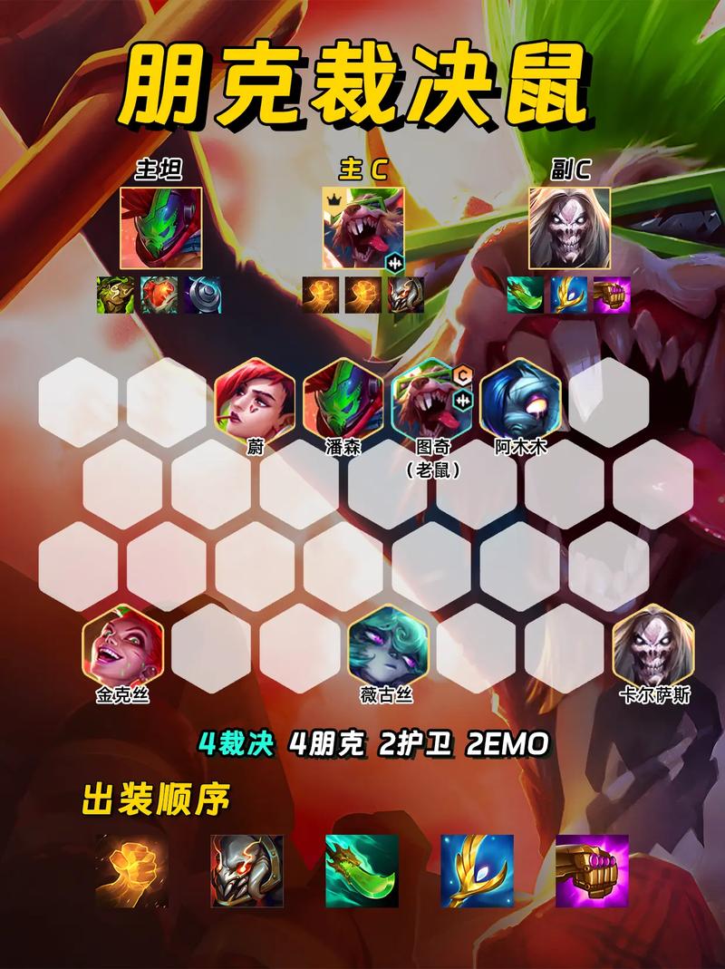 〖One〗、完成赛季手册,免费领取小小英雄和棋盘皮肤。狂暴模式练手,无经济压力,熟悉棋子搭配。参与限时活动,如「画中灵探险」,领取赛季专属奖励。进阶技巧 假人站位:利用假人吸引敌方刺客跳后排,保护核心输出。装备拆卸器:优先拆卸橙装,如「自然之力」,给5费卡使用。