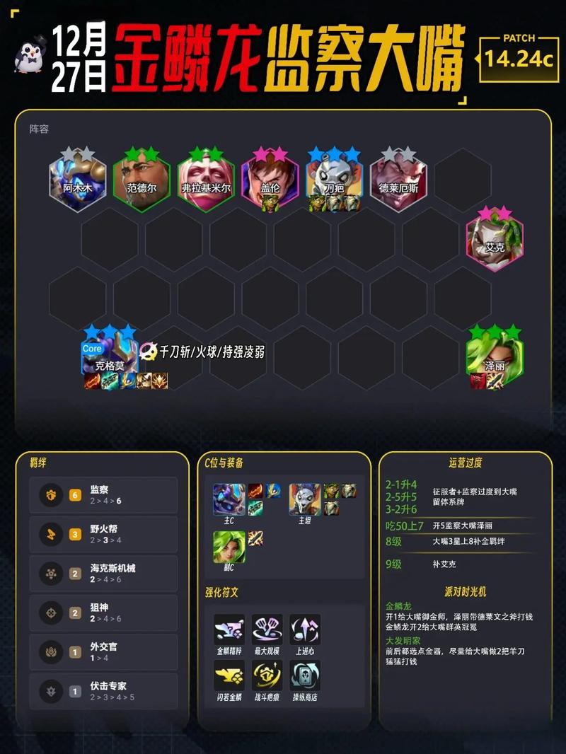 金铲铲之战S13最强过渡阵容的关键策略如下:提升两星卡和三费卡的质量:两星卡的重要性:两星卡相比一星卡,血量提升8倍,伤害输出增加50%,能显著提升阵容的生存和输出能力。三费卡的利用:三费卡的性能优于一费卡,能提升约13%的战斗力,尽早通过打工或选秀获取三费卡,增强阵容强度。
