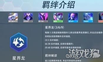 〖One〗、星界龙羁绊 效果介绍:星界龙羁绊是一个以低费卡为核心的羁绊,每当商店刷新5次时,必定能刷出星界龙的卡牌,并有机会掉落战利品法球。法球中可以开出金币,游戏后期开到9星界龙时,甚至可以掉落装备散件。