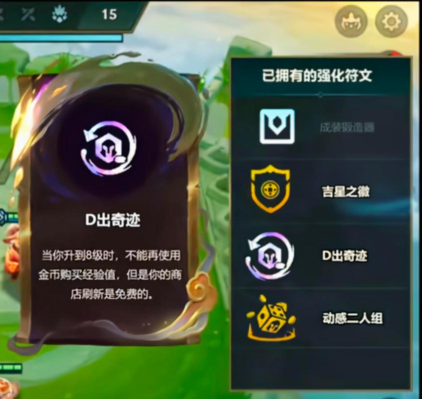 〖Two〗、优先强化符文选取 开摆:在下面的3回合里无法采取任何行动,但之后能获得20金币。适合稳健发育,为后期九五做准备。怦然心动:保留20%心之钢心能,弈子获得200生命值,并获得奎桑提和厄斐琉斯。对九五至尊阵容有显著提升。掀桌:立刻出售所有弈子以获取两倍金币,下面8次商店刷新免费。