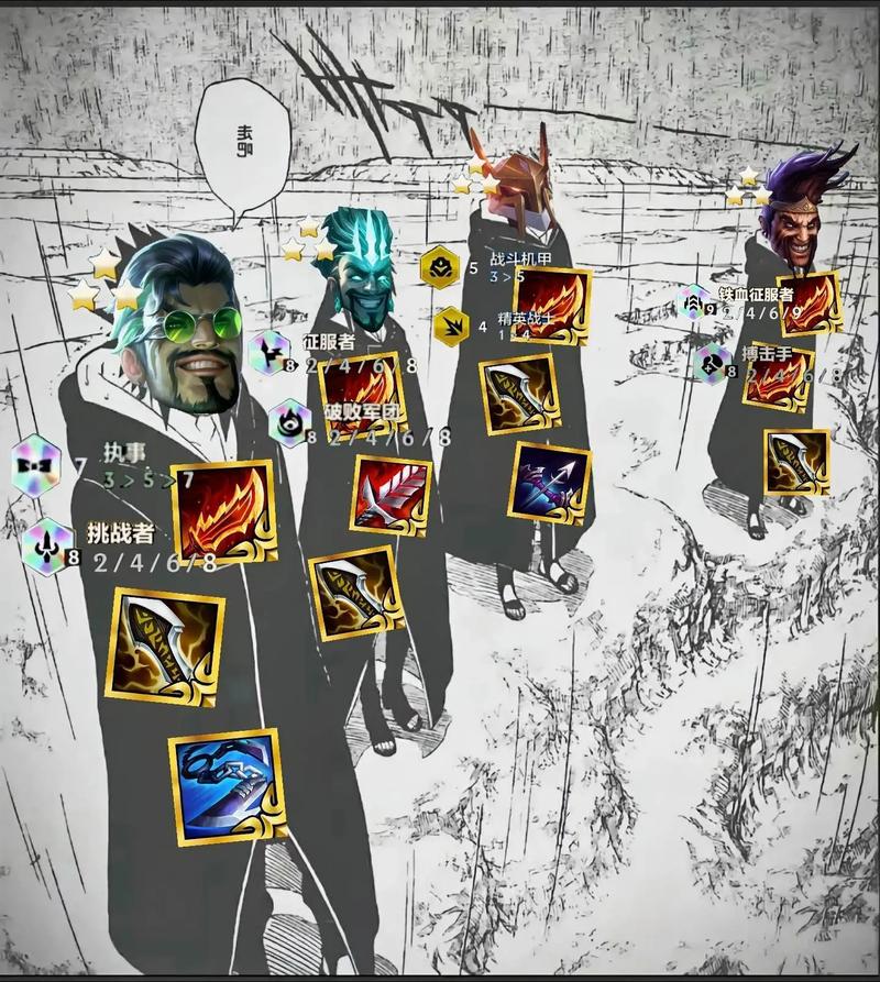 〖One〗、金铲铲之战彩色羁绊征服德莱文战无不胜阵容详解 阵容核心:该阵容以德莱文为核心输出,搭配征服者、破败军团等羁绊,形成高爆发、高机动性的战斗体系。德莱文的强大单体输出能力,配合征服者的攻速加成和破败军团的额外伤害,使得该阵容在战斗中能够迅速击溃敌人。