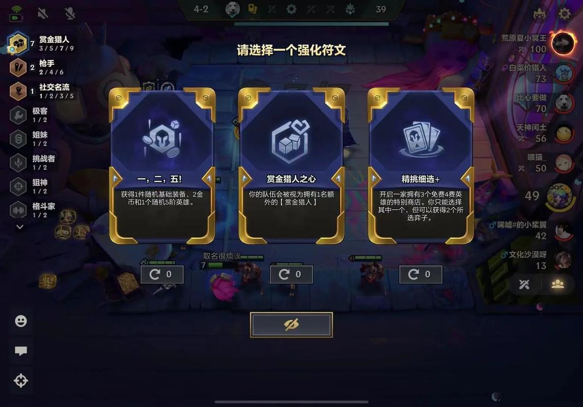 〖Three〗、在金铲铲之战手机版中,赏金(即“赏金猎人”羁绊)的运营策略主要包括以下几点:快速组建赏金猎人羁绊:开局行动:游戏开始后,迅速行动,优先抢夺第一个海克斯科技强化,并尽量选取与赏金猎人相关的强化效果。