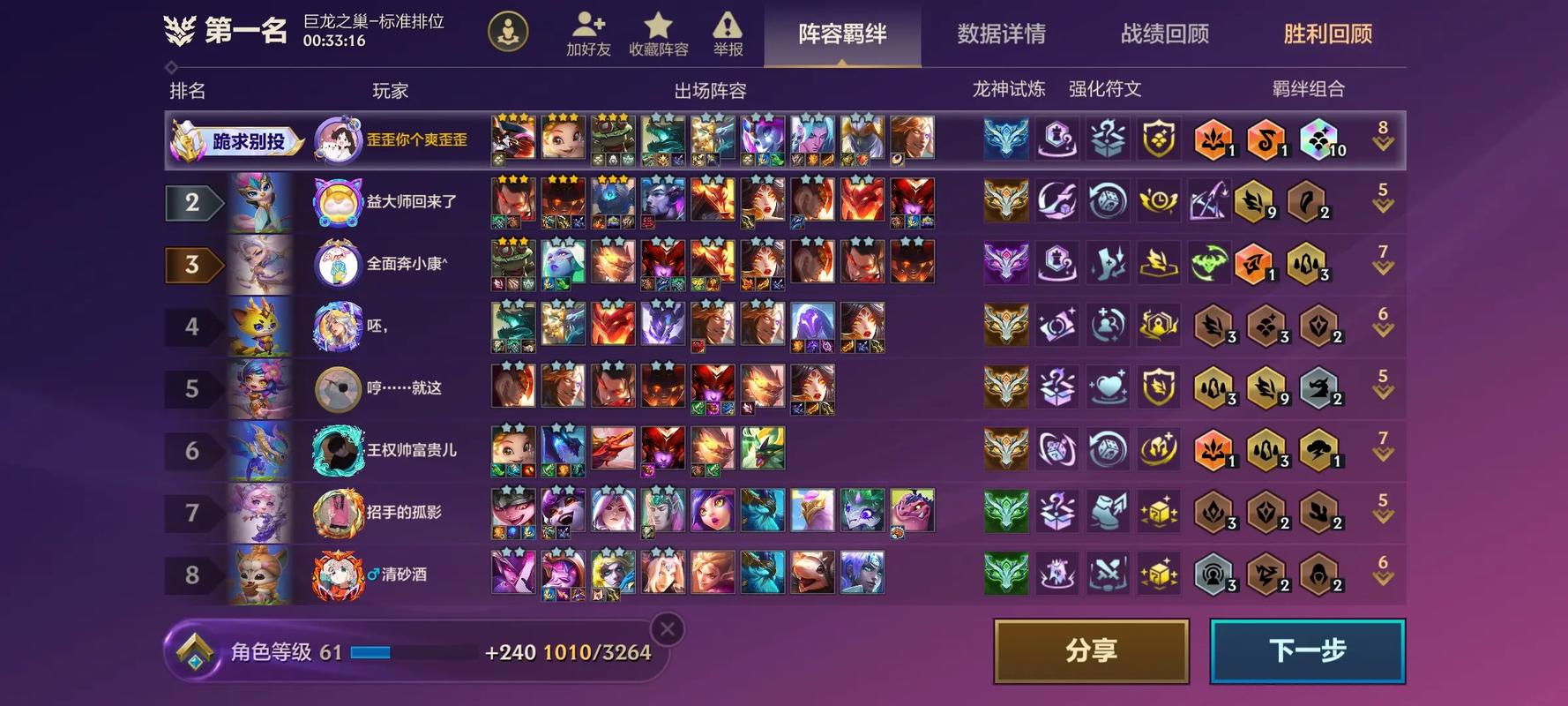 〖Six〗、升级和补羁绊:随着等级的提升,逐步补充烈焰和炮手羁绊,提升整体输出能力。搜卡和提升质量:在升人口的过程中,积极寻找艾达丝和巴德,并提升整体阵容的质量,确保在后期战斗中能够占据优势。通过以上分析,玩家可以更好地理解和运用金铲铲之战中的金鳞龙炮手阵容,提升游戏体验和胜率。