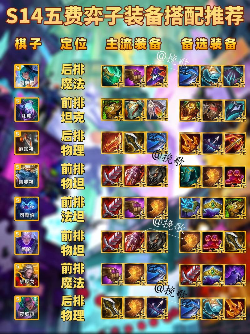 〖One〗、白魔法师:提供魔法抗性加成和治疗、护盾效果加成,增强队伍的防御能力。 学者:每2秒回复法力值,加快技能释放速度。 装备推荐: 主C维克托:青龙刀加任意法伤装,如大天使之杖、珠光护手等,提升技能伤害和释放频率。 薇古丝:作为前排坦克,需要1-2件肉装,如狂徒铠甲、荆棘背心、巨龙之爪等,提升生存能力。