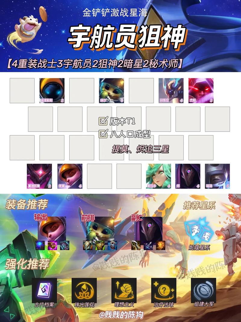 〖Five〗、S10赛季金铲铲之战最强阵容搭配指南及轻松上分秘籍如下:六约德尔人阵容 英雄选取:以约德尔人为核心,如吉格斯、崔丝塔娜等,搭配控制型英雄如莫甘娜或布隆。装备搭配:核心装备为青龙刀、无尽之刃,提升约德尔人的输出能力。