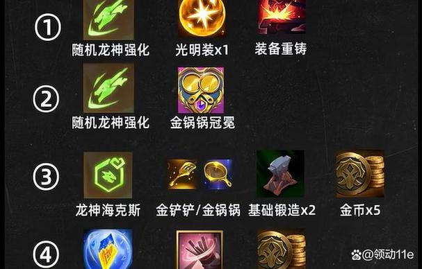 满意度:玩家有机会获得一件成装、5金币、4个随机4费英雄、辅助装备、拆卸器、转职纹章等。这些高级奖励能够显著提升玩家的战斗力。100满意度:达到这一层级的玩家,可能获得的奖励包括20金币、光明装备、英雄复制器、3个随机5阶龙神、金铲铲冠冕等。这些奖励是玩家在游戏中取得胜利的关键。