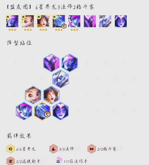 〖One〗、金铲铲之战S7星界韦鲁斯上分阵容攻略如下:阵容搭配:核心英雄:韦鲁斯,作为主要输出点,搭配星界龙能产生良好效果。前期过渡:使用迅捷射手与格斗家组合,便于保留牌库并确保强度。中期成型:在7级时,收集二星韦鲁斯与俄洛伊,同时保持2迅捷与2格斗过渡策略,并可加入2重骑兵增强前排抗性。