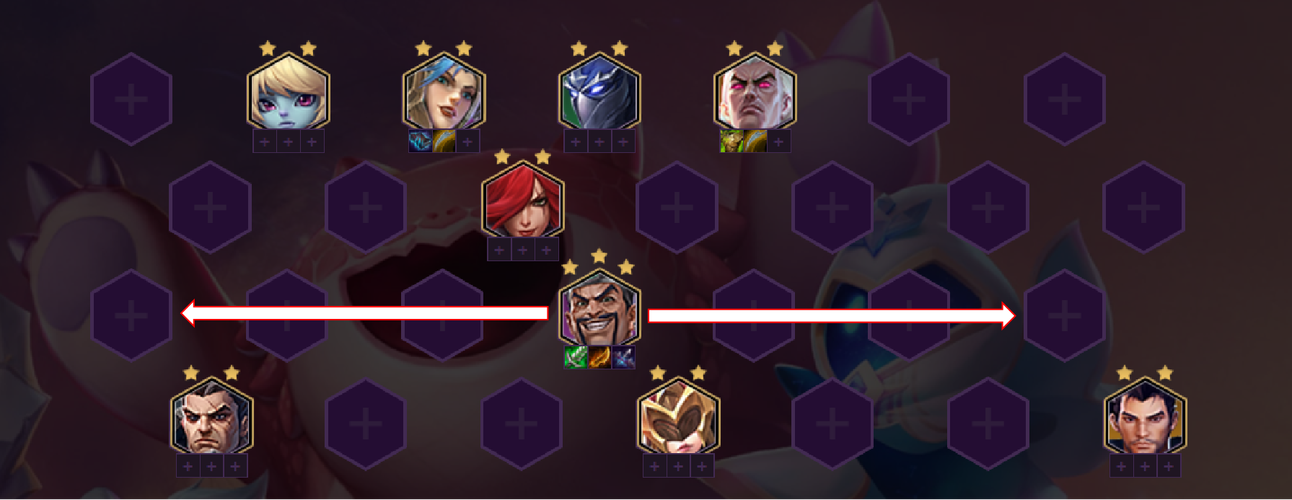 乌鸦前期对位名流坑的位置,后期对位人多的地方;拉克丝和敌方C位站对角。如果后期露露一直没3,就可以换成高质量5费卡或者2星发条。拉克丝主C的话比较怕白魔永恩,但其他的阵容都有一战之力。