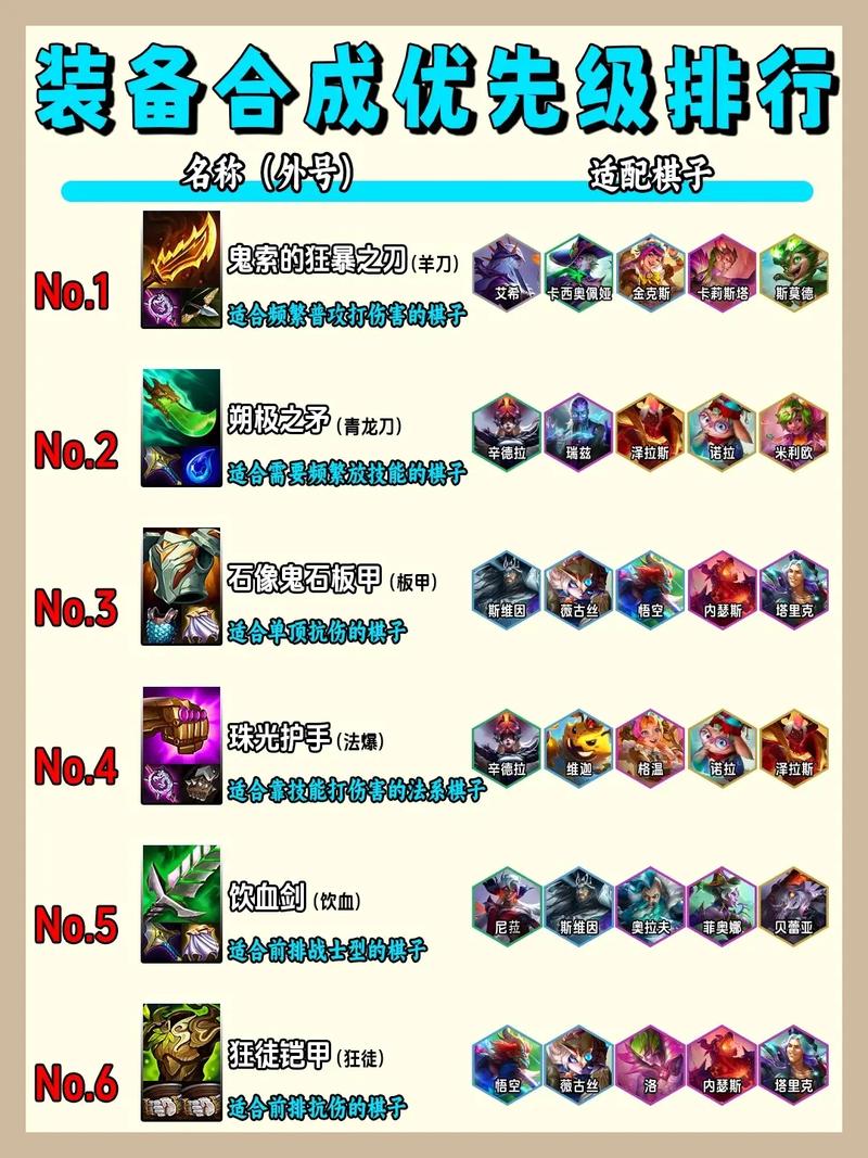 〖Two〗、开局(1-3阶段)优先抢装备:主要抢反曲弓(羊刀)、大剑(德莱文之斧)和锁子甲(肉装),这些装备对金鳞龙阵容的成型和稳定至关重要。过渡阵容:采用3金鳞龙(凯隐+沃利贝尔+亚托克斯)搭配2格斗或2射手,这样的组合能在前期保持一定的战斗力。