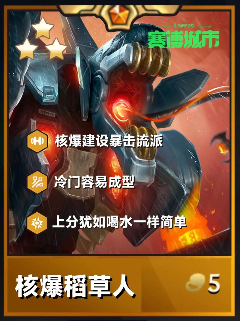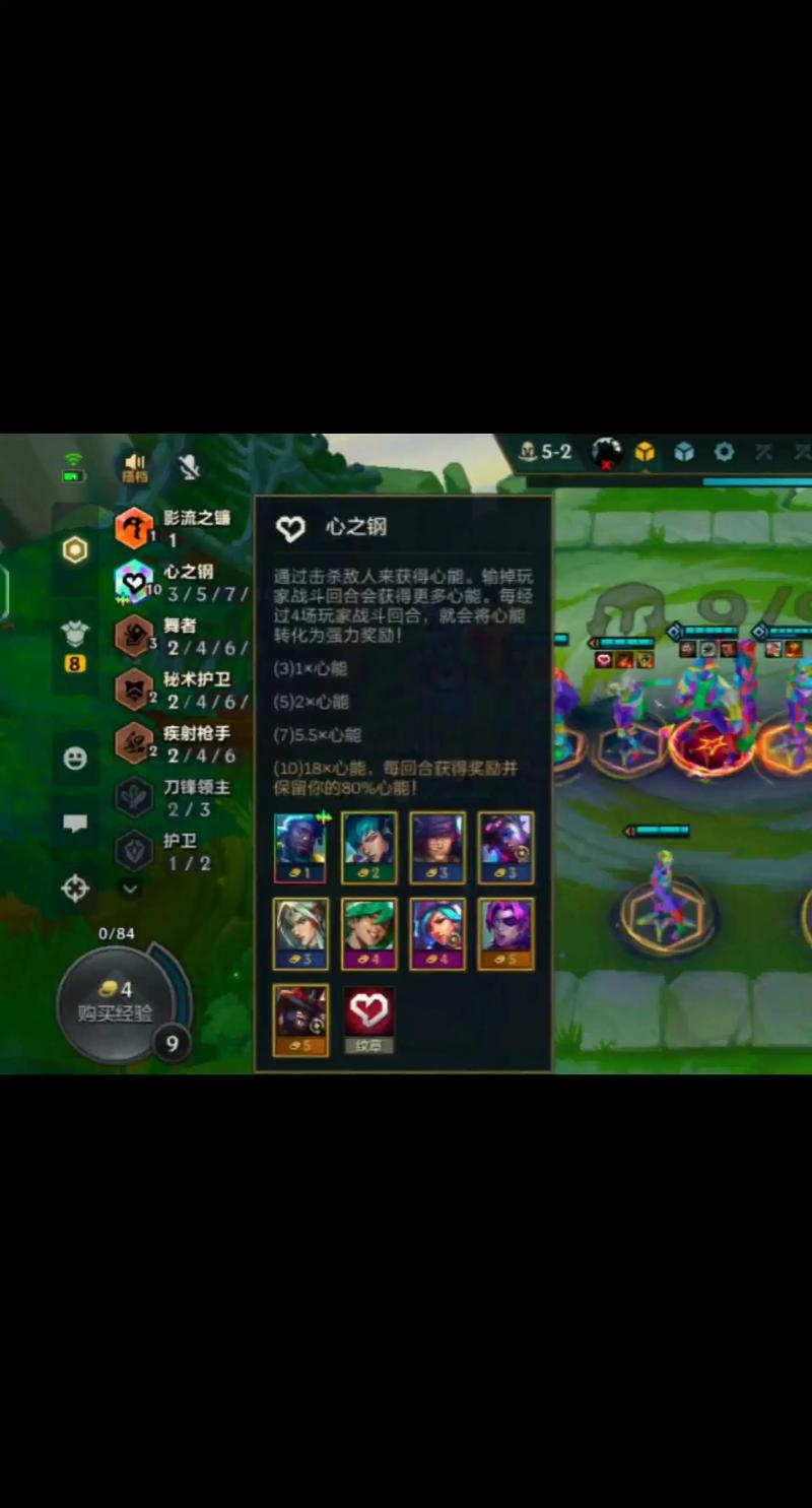 〖Three〗、心之钢(赏金羁绊):特效:前期非天胡也可后期用来收菜,连胜连败都能获得奖励。评价:一套极具策略性的羁绊,让玩家在前期和后期都有发挥空间。五杀摇滚:特效:获得伤害减免及随着击杀增长的额外伤害。评价:全员恶人既视感,适合喜欢进攻的玩家。