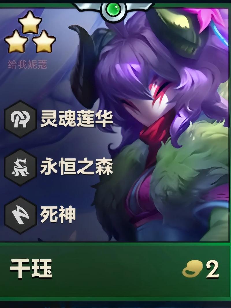 金铲铲之战S11千珏主C阵容推荐及装备搭配攻略 阵容推荐 千珏主C阵容在当前S11赛季中,以4永恒之森、4死神、2擎天卫、2夜幽、2护卫为主要羁绊组成。该阵容玩法简单,以六级不断D两个二费永森三星为核心,利用不断成长去战斗,后期强度依然可观。
