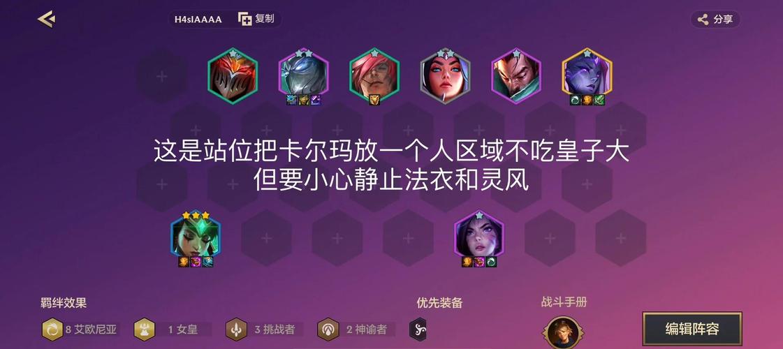 〖Three〗、主C装备:EZ装备推荐为蓝buff、红buff和无尽之刃,以提升其技能释放频率、输出能力和对敌方的灼烧效果。主T装备:锤石作为前排坦克,推荐装备狂徒铠甲、龙牙和反甲,以增强其生命值、魔法抗性和物理防御能力。运营思路 前期:尽量保持连胜,以稳定血量和经济。利用心之钢羁绊的奖励机制,逐步积累优势。
