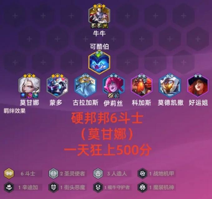 〖Three〗、《金铲铲之战》怪兽至高莫甘娜阵容攻略 阵容搭配 核心羁绊:3至高天、3混沌战士、2福牛守护者。关键英雄:莫甘娜(主C)、拉莫斯(前排坦克)、佛耶戈、烬等。符文分析 最优符文:莫甘娜的“恐惧即是自在”,能显著提升阵容强度。