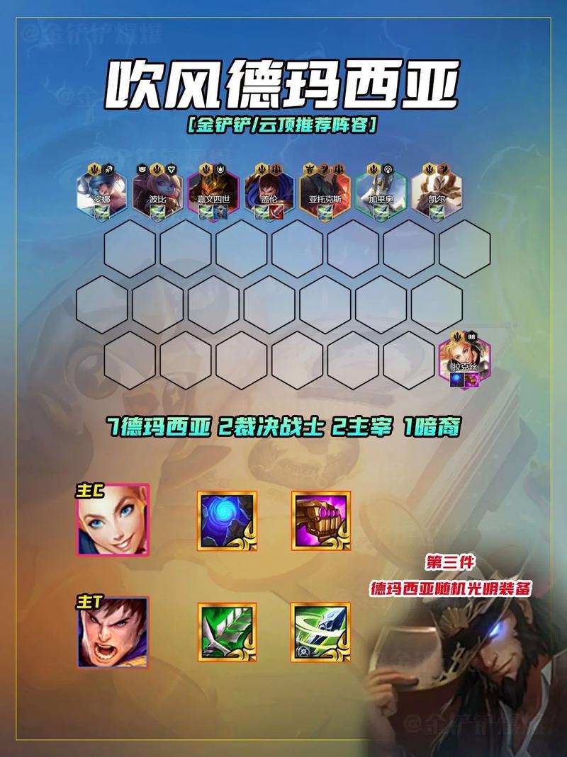 〖Three〗、金铲铲之战七发明家阵容推荐玩【白法发明家】7发明家2白魔2学者。具体攻略如下:棋子及羁绊如图所示。阵容中的核心棋子包括杰斯、发条、伊泽瑞尔、斯维因、玛尔扎哈等,他们共同构成7发明家2白魔2学者的羁绊。装备分析2阶段过渡可以用炸弹人带法装,斯维因带肉装,用法师度过2阶段。