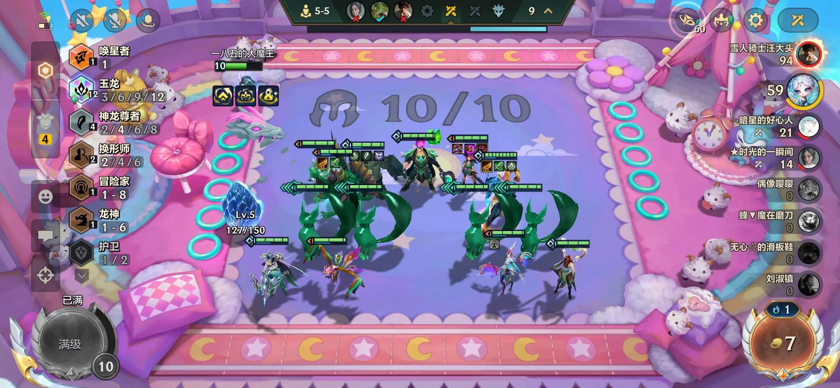 《金铲铲之战》玉龙九五阵容玩法攻略 阵容组成:妮蔻、纳尔、石傲玉、卡尔玛、艾希、索拉卡、巴德、艾尼维亚。阵容羁绊:9玉龙、2换形师、2秘术师、1冒险家、1吟游诗人。转职推荐:优先获取玉龙纹章,通过“玉龙之心/徽/魂”强化羁绊效果。