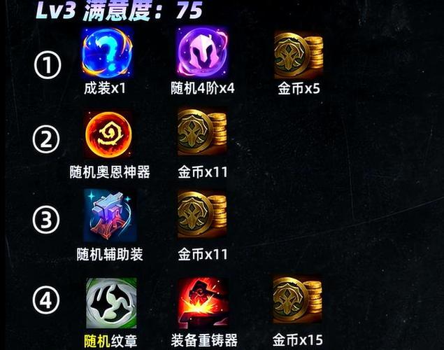 在《金铲铲之战》游戏中,要达成龙神200满意度,玩家需要通过选取不同的龙神之路来累积满意度点数,当满意度点数达到200时即可达成。龙神之路有以下四种选取:胜利之路(金色):此路径适合前期强势阵容,走连胜路线。玩家每赢一局对战可获得4点满意度,并且在连胜时会获得额外的满意度提升。