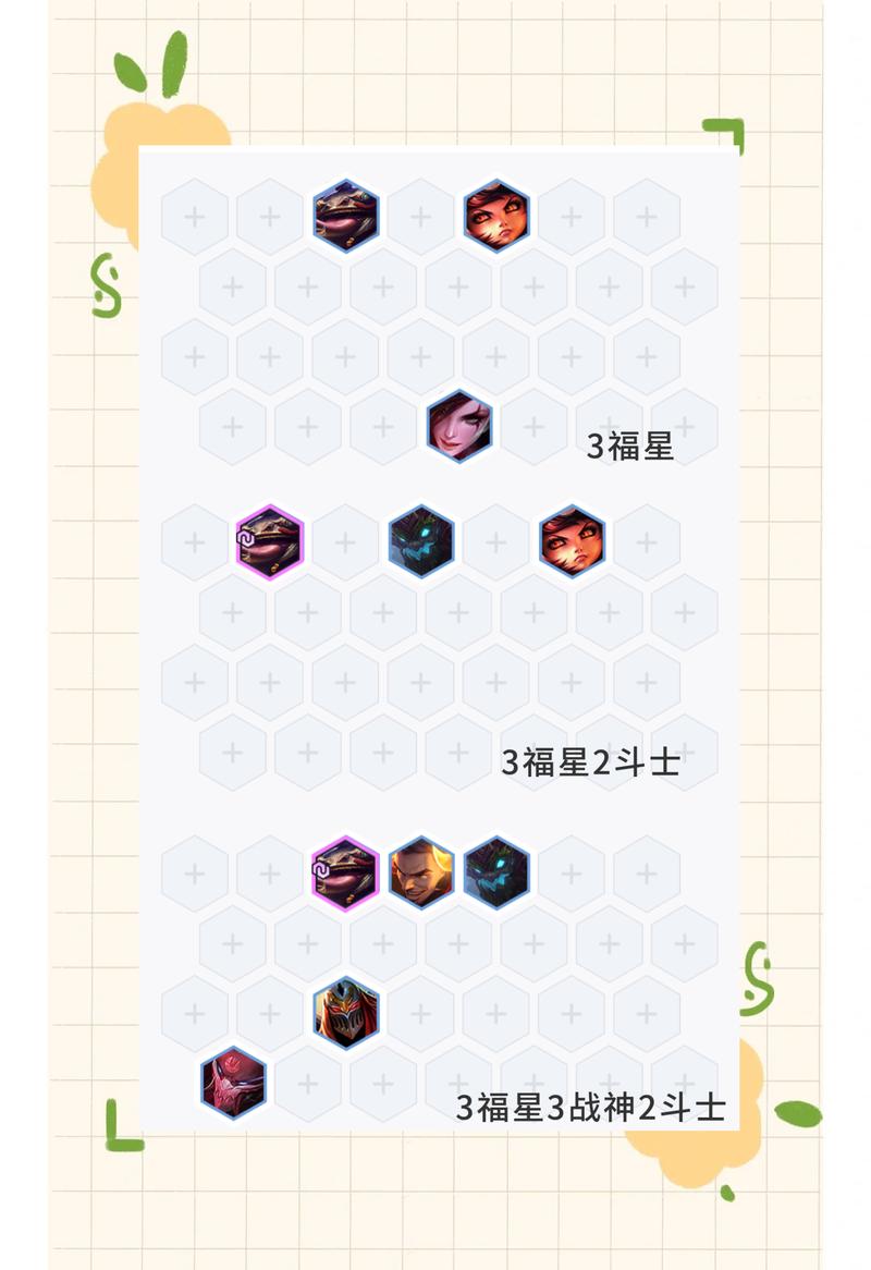 永恩、盲僧:蓝BUFF、科技枪(控制与残血收割)。运营要点:6福星需在7级D出至少一张5费卡(如凯隐)终止连败。8级后逐步替换福星卡,优先上9人口找二星5费卡。关键细节与避坑指南赏金层数选取:3赏金仅建议玩前两种玩法(三国卡特/福星射手)。6赏金必玩转95,3星五费卡概率大幅提升。