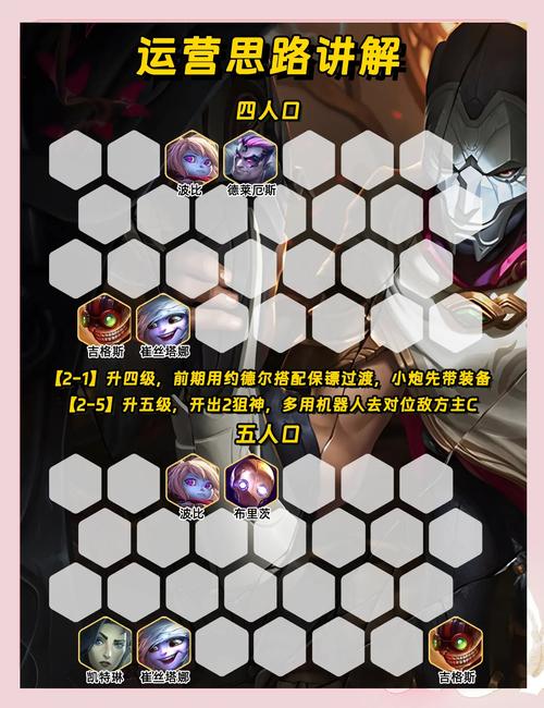 黑默丁格:优先选取攻击力较高的装备,如无尽之刃、珠光护手等,以提高其输出能力。白魔法师:选取防御和辅助类装备,如巨龙之爪、救赎等,增强其生存能力和辅助效果。运营策略:早期运营:以稳定发育为主,积累金币和英雄,形成初步的阵容体系。通过合理的连携和搭配,提高阵容的整体战斗力。