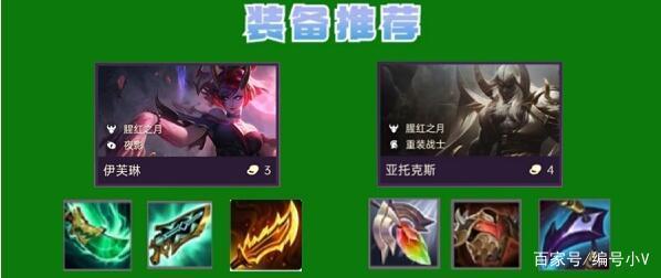 〖Three〗、输出核心:厄斐琉斯或亚索。这两位英雄具备高额的输出能力,是腥红之月阵容的主要伤害来源。坦克核心:瑟提。作为前排坦克,瑟提能够吸收大量伤害,为后排输出英雄提供保护。装备搭配 输出装备:推荐给厄斐琉斯或亚索配备无尽之刃、轻语等攻击型装备,以最大化伤害输出。