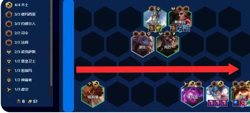 T0阵容核心英雄 拉克丝:在法师术士或德玛西亚体系中,拉克丝都是强度极高的选取。其技能伤害和控制能力都非常出色,特别是前排灵风加拉克丝的玩法,能够开局直接秒后排,非常强势。厄加特:尽管经过削弱,但厄加特的强度依然很高,这主要得益于祖安羁绊的强力加成。厄加特能扛能打,是后排输出的绝佳选取。