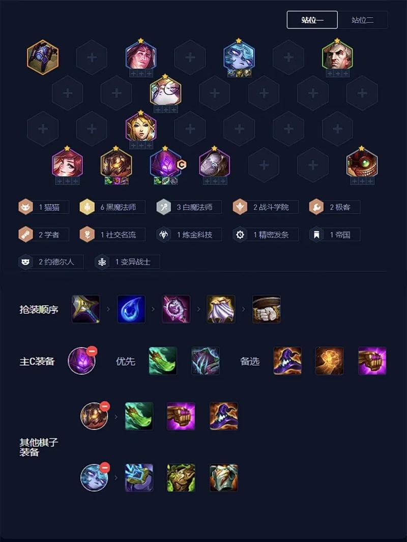 〖One〗、阵容搭配:建议选取以“狙神”为核心羁绊,搭配“游侠”和“枪手”等羁绊来增强薇恩的输出环境。具体英雄组合为薇恩、风女、金克丝、寒冰射手、厄运小姐、蕾欧娜和锤石。这样的组合既能提供稳定的控制和保护,又能通过多重攻击效果提升薇恩的输出效率。