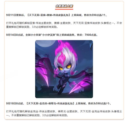 〖Four〗、金铲铲之战新版本24返场内容核心信息如下:小小英雄【小小金克丝】限时返场小小金克丝以晶能石兑换形式限时回归,兑换费用为20晶能石/个。作为经典角色,其技能特效与模型设计延续了高辨识度风格,适合收藏或提升对战体验。