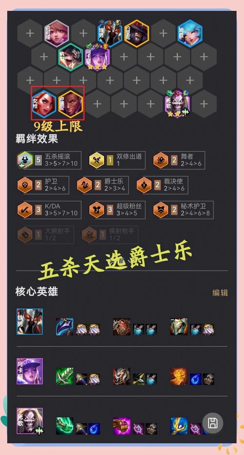 金铲铲之战S10乡村乐硬核双C阵容推荐:阵容核心:该阵容以扎克为核心,利用新版本电子舞曲羁绊的变形能力,搭配乡村乐和舞者的羁绊效果,形成强力的输出和控制能力。电子舞曲羁绊:电子舞曲羁绊允许玩家在开局前选取一个电子舞曲棋子作为采样,其他电子舞曲棋子会周期性地变形为被采样的棋子,并释放其技能。