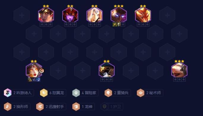 〖Four〗、Q:这套阵容怎么玩?A:这套阵容的羁绊简单只有怒翼龙和换形师,适合刚加入金铲铲的新手玩家,阵容过度平滑,和版本主流阵容比不是太看重运气,阵容不仅有希瓦娜的大控还有赫卡里姆的控制,输出位有霞和希瓦娜,整体来说强度很高。