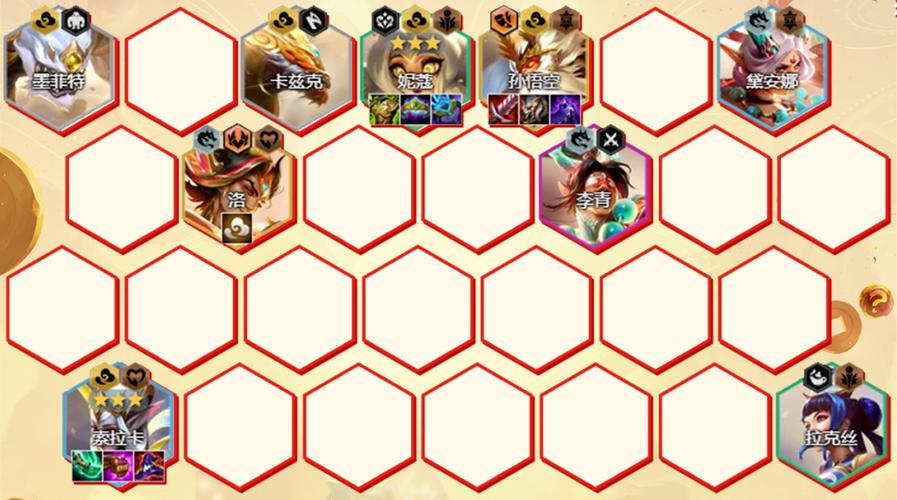 金铲铲之战S11最强上分阵容推荐:六法拉克丝阵容 阵容组成:核心英雄:阿狸、拉克丝、妮蔻、阿木木、俄洛伊、亚飞(此处可能指某未明确弈子,通常根据版本调整,但不影响整体阵容构建)、寒冰、辛德拉、冰女。阵容羁绊:以6法师为核心,搭配其他羁绊如2青花瓷、2护卫等,根据具体对局情况灵活调整。