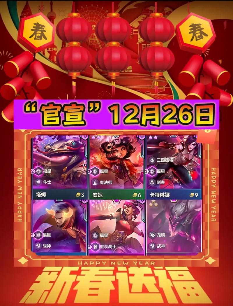〖Three〗、金铲铲之战2025福星将于2025年1月16日正式回归。回归时间 具体日期:2025年1月16日。模式名称:天选福星赛季好运。更新内容概览 新增羁绊效果:引入了【2新春使者】羁绊,为所有新春使者提供额外生命值和全能吸血效果,增强生存和输出能力。