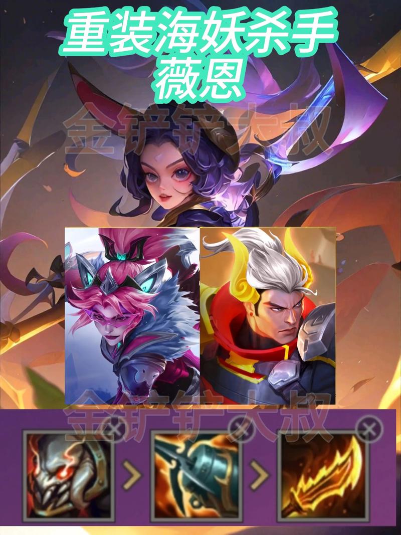 〖Two〗、薇恩:鬼索的狂暴之刃、无尽之刃和巨人杀手。鬼索的狂暴之刃配合决斗大师的攻速叠加效果,快速启动输出;无尽之刃结合情报特工羁绊,提高暴击率;巨人杀手提供额外伤害,处理前排能力强。瑟庄妮:救赎、反甲和龙牙,提高生存能力。其他装备如狂徒、日炎披风和鬼书等,根据情况调整。
