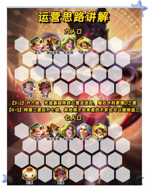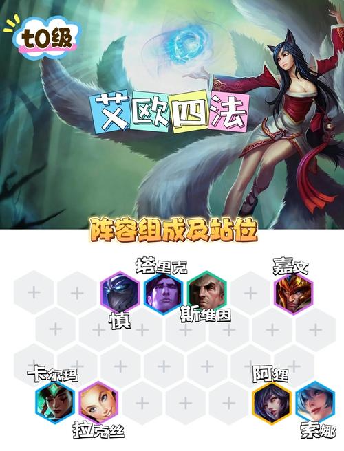〖Four〗、金铲铲之战s10六秘阿狸阵容具有一定的趣味性和强度,是一个值得尝试的阵容。以下是对该阵容的详细分析:阵容构成与羁绊 阵容成员:莉莉娅、盖伦、萨勒芬妮、艾克、铁男、机器人、阿狸、娑娜。