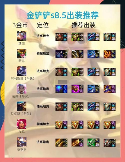 在金铲铲之战中,4幻境龙3龙神阵容的玩法推荐如下: 关键角色与装备 迭嘉:核心输出角色,需携带羊刀与科技枪来提升输出能力和生存能力。法剑系装备推荐大天使,而火炮可作为法剑系的备选装备。 金龙:装备选取御金师、大宝石、投机者等,以增强阵容的整体实力和续航能力。