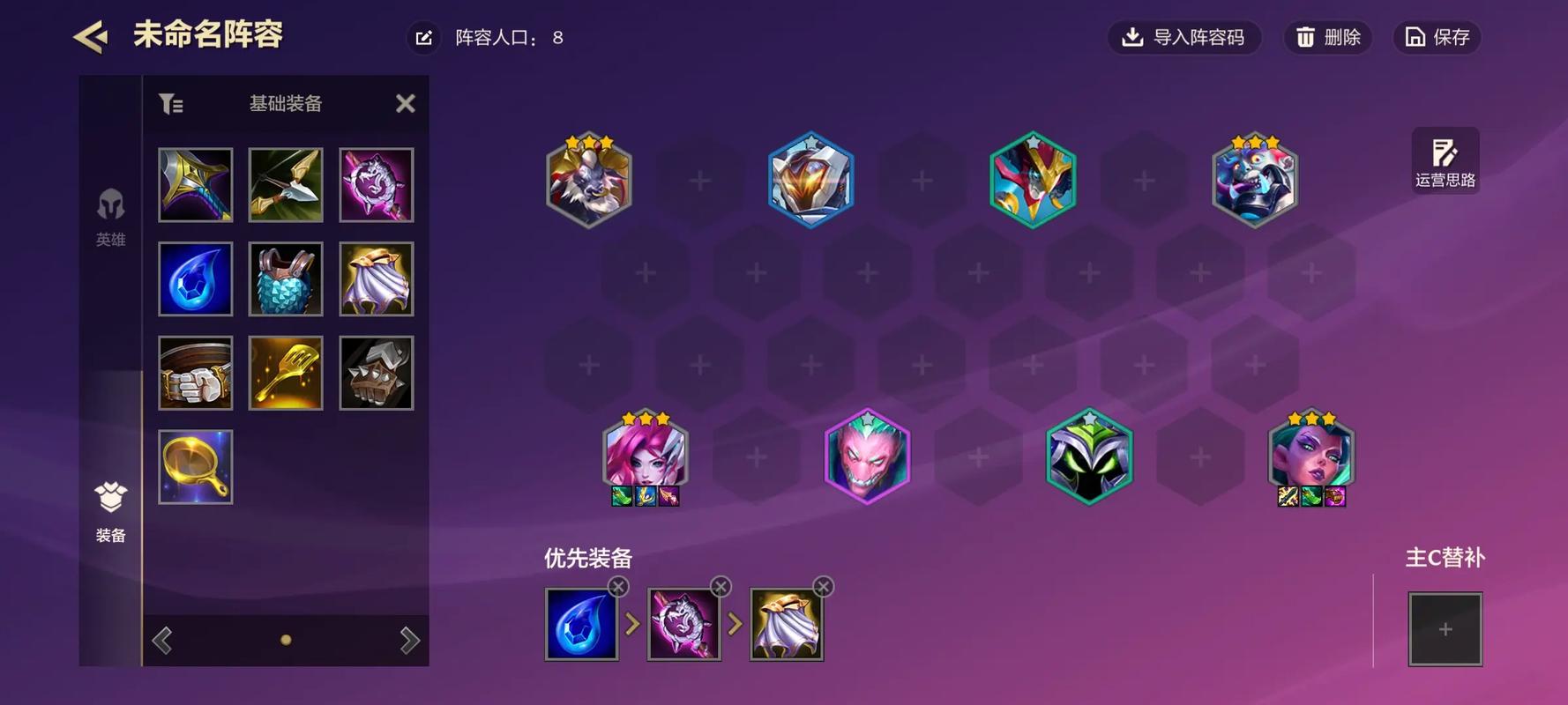 金铲铲之战S拼多多冒险老鼠玩攻略阵容分析组成老鼠、猪妹、流浪、男刀、巴德、琪亚娜、伊泽、莉莉娅。装备老鼠:必要的杀人剑和分裂弓,最后一个是无穷无尽的,饮血和巨杀莉莉娅把肉装作前排。