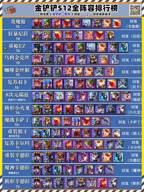 《金铲铲之战》T0阵容及搭配上分方法 T0阵容介绍 狮子狗阵容:以狮子狗为核心,搭配冰霜女巫、火男等辅助英雄,以及剑圣、火女为输出英雄,形成高爆发、高控制的阵容。猎人阵容:以猎人为主力输出,同样搭配冰霜女巫、火男等辅助,以及剑圣、火女为输出,形成强大的输出能力。