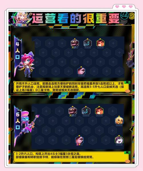 开局策略与运营节奏天选福星判定:开局天选必为安妮或塔姆,且需确保能凑齐三福星(安妮、塔姆、卡特琳娜),此为福星玩法基础条件。连败存息:福星阵容需主动走连败以积累奖励,期间尽量保持50金币利息升级人口,快速攀升至7级。