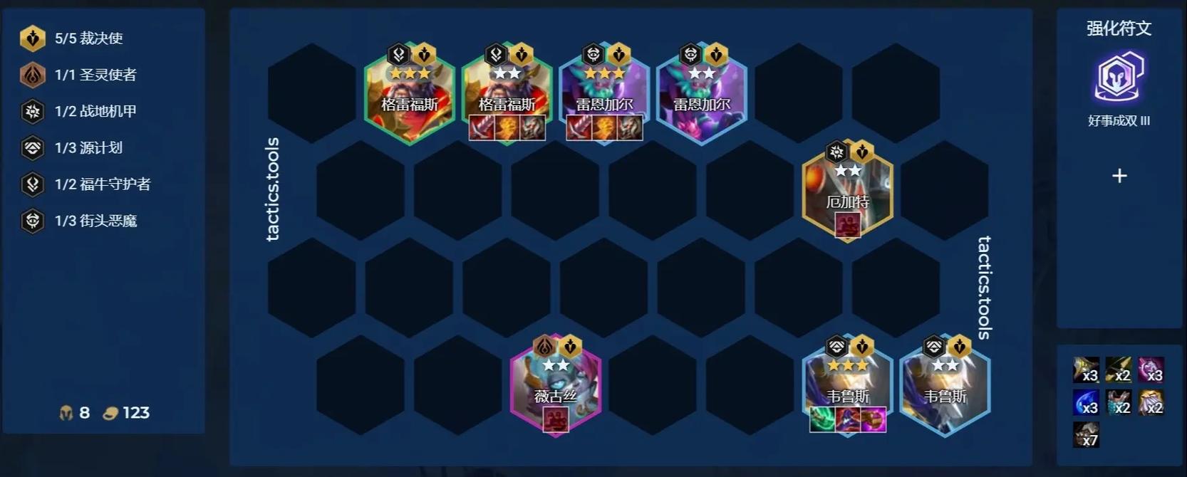 〖Five〗、强度:很高。推荐度:任何阶段都可以拿。窃贼帮派是S13赛季中非常强大的银色海克斯,它可以提供额外的装备,与幸运偷偷联动效果更佳。前期有两星前排带偷偷会显著提升战斗力,后期装备充足时可以考虑不拿。乞亦有择:强度:一般。推荐度:需要刷特定强化时可以考虑。